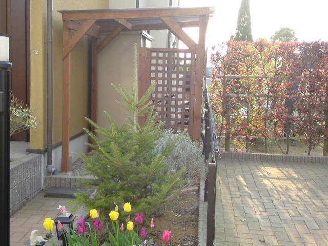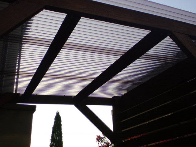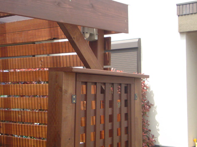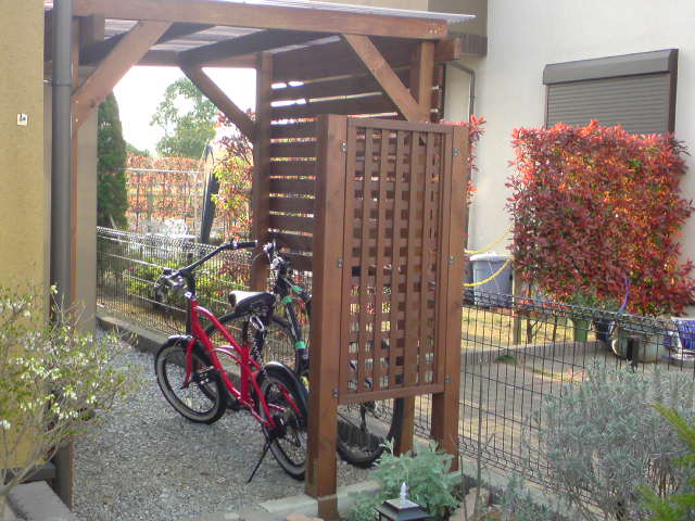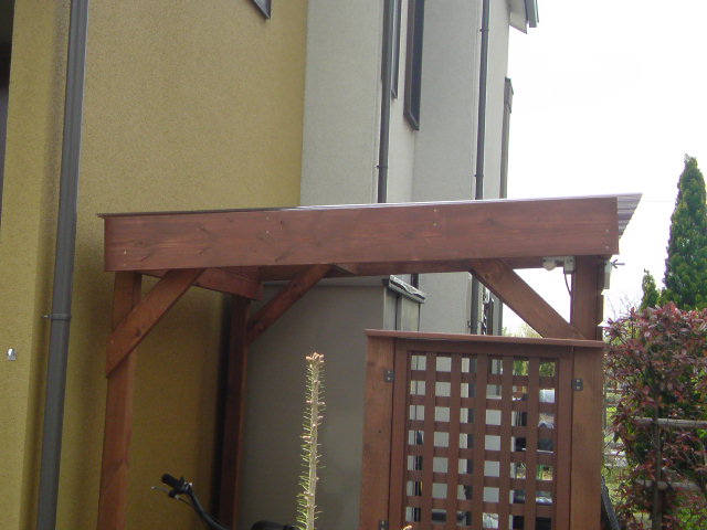 垂木(?)を渡して、波板張って、目隠し張ってとわけない作業なんだけど、相変わらず現物合わせな為、取り付けては外して取り付けては外してを何回繰り返したことか(-.-;)