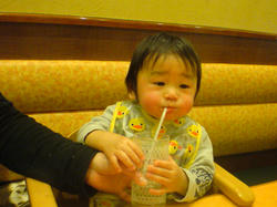 今までは1,2回連れて来た事がありましたが、いずれもマメが寝ている間にサッサと自分達だけ食べて帰るという荒業?でしたが、今日はちゃんと起きている時に連れて来て一緒に食事しました。