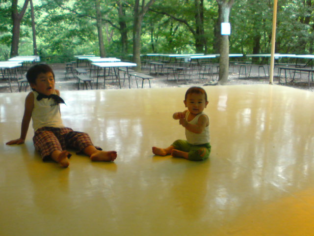 甥っ子ははしゃぎ過ぎ、マメは座り過ぎで疲れたので、しばし涼を取りながら休憩です!( ̄m ̄)プププ